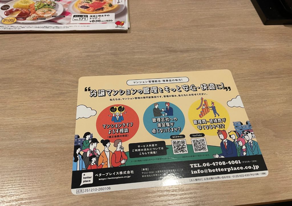 大阪市内のすかいらーくグループのガスト店舗の全テーブルにおいて、ステッカー掲出にて当社がテーブルジャックしています。